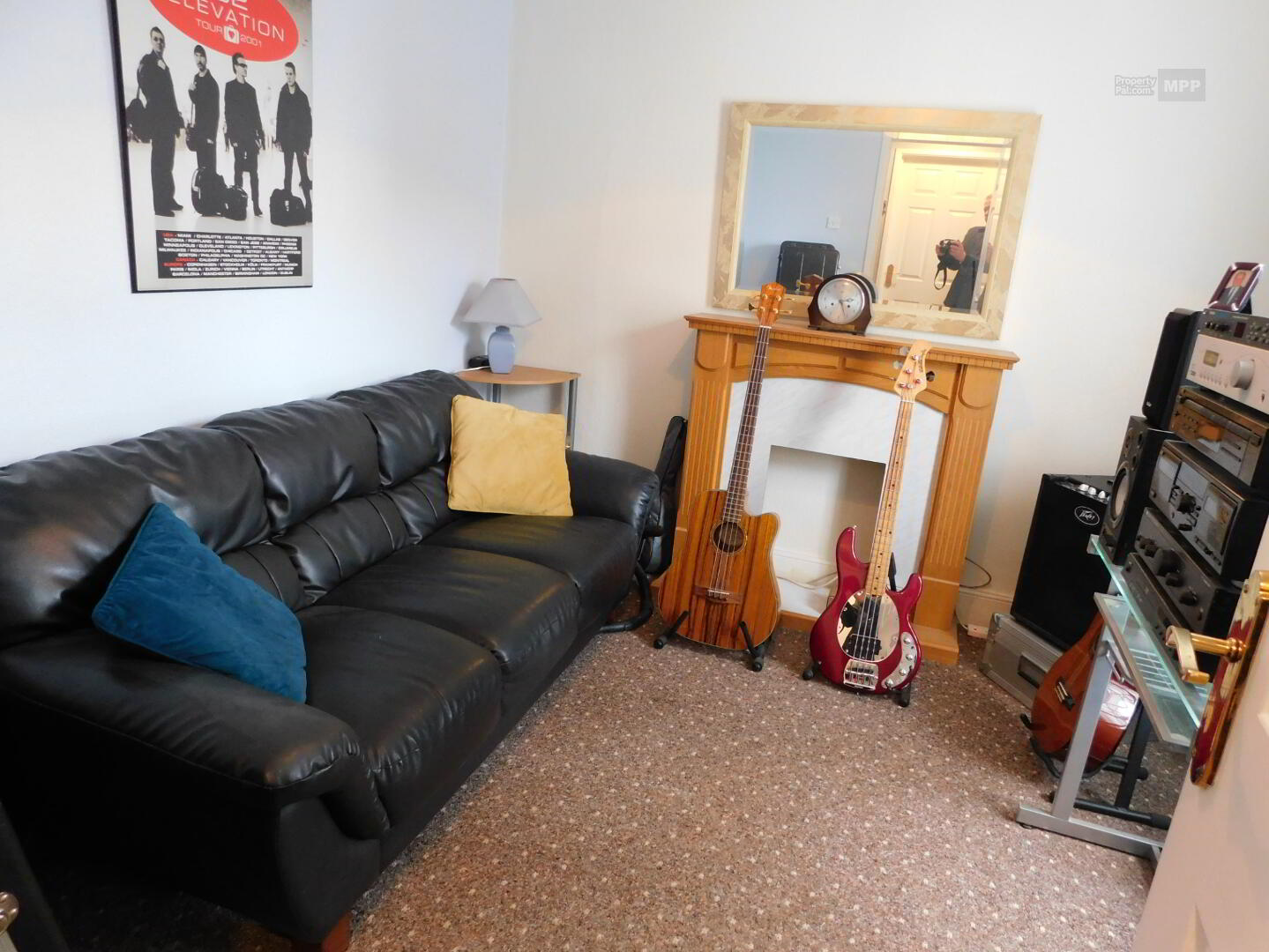 Living Room:           12’10” x 9’08” Carpet Flooring, Wooden Fireplace with Cast Iron Inset, TV Point, Telephone Point, Hot-Press.