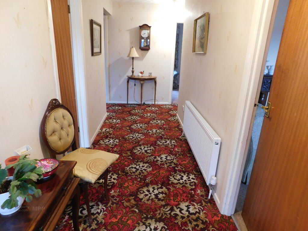 Entrance Hall: 4’11” x 19’08” Carpet Flooring, Telephone Point, Hot-Press.