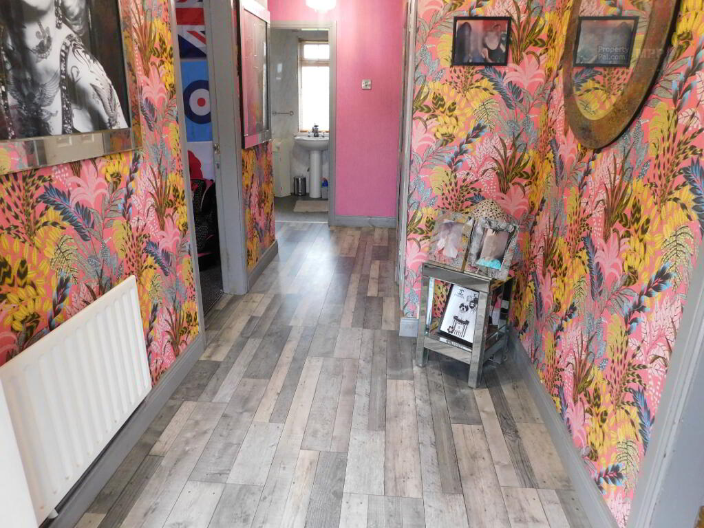Entrance Hall: 17’01” x 5’08” Modern Grey Laminate Oak Flooring, Telephone Point, Cornice, Hot-Press.